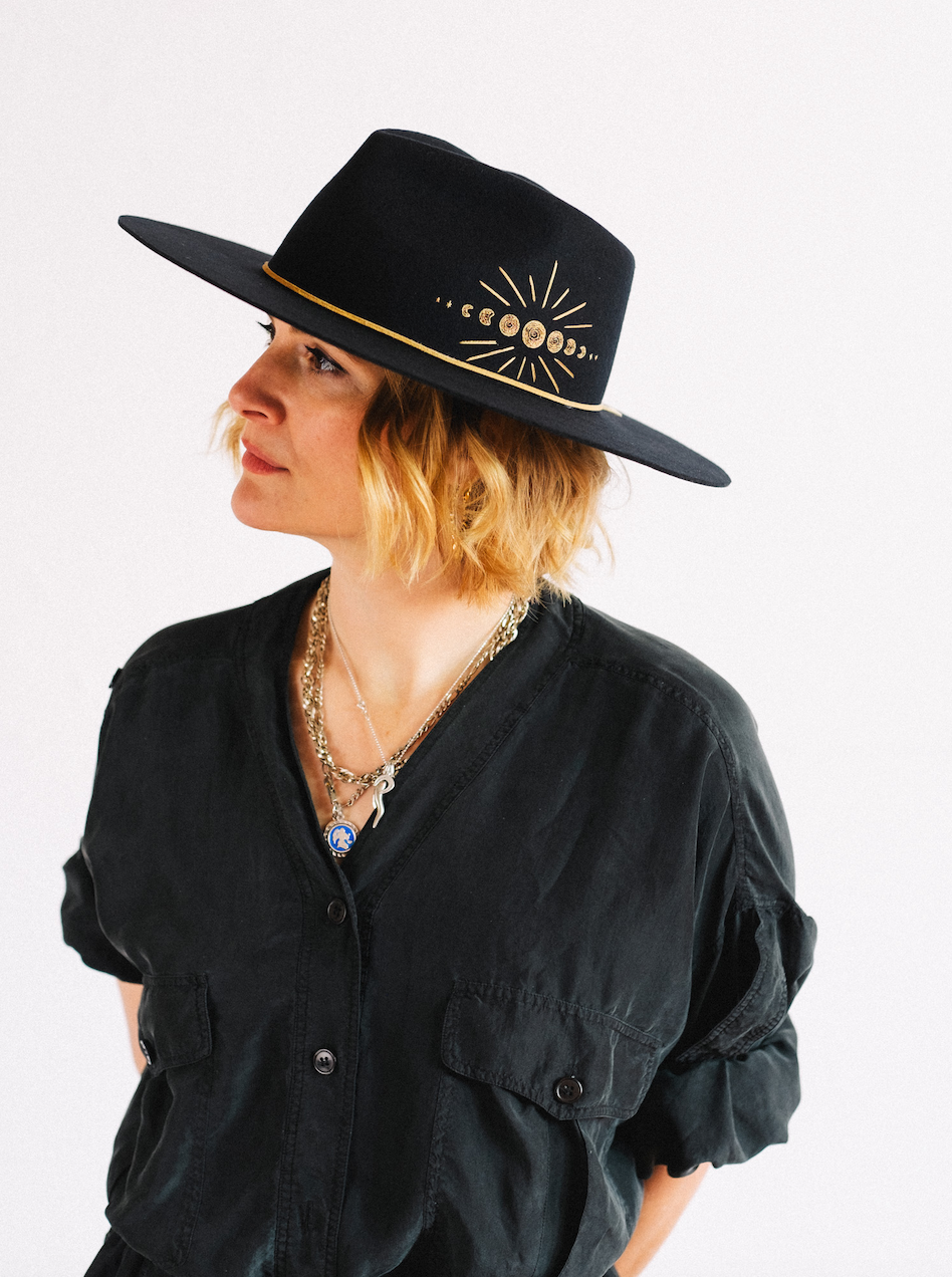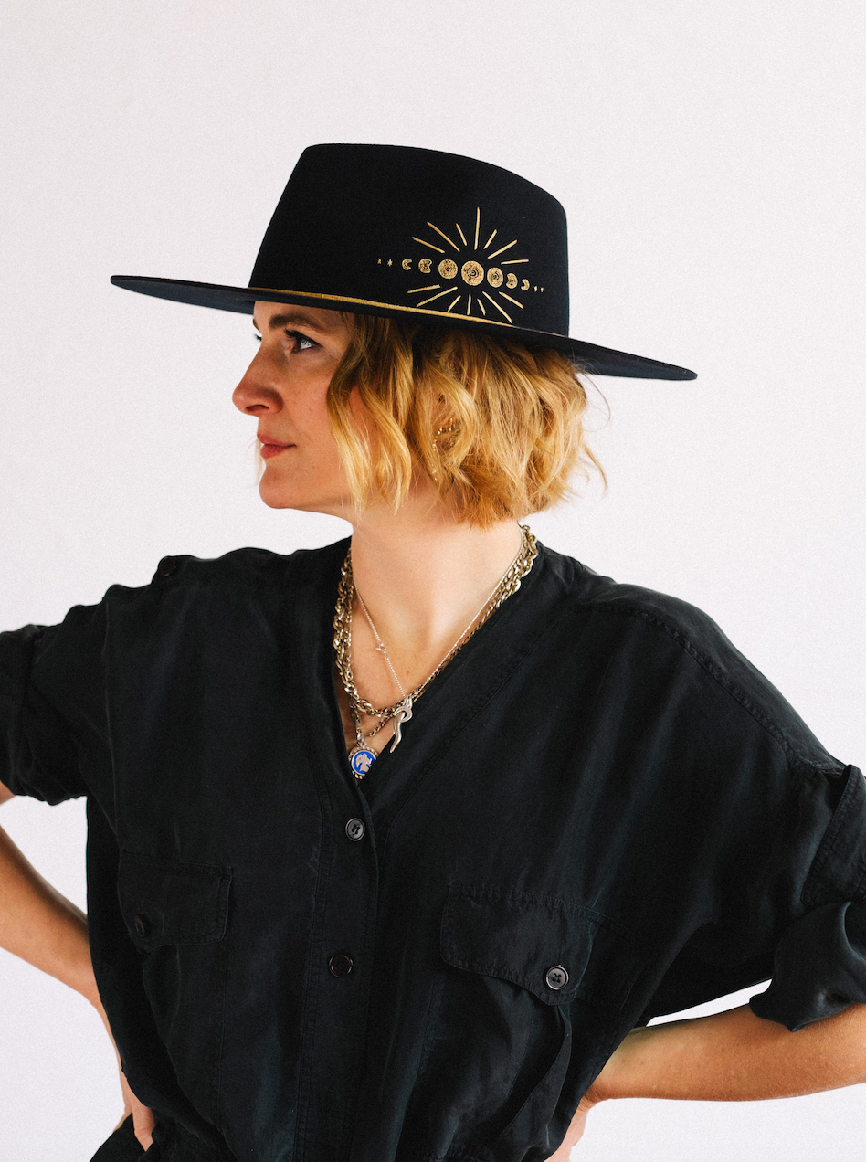 Made with 100% Australian wool in a western weight, it has a stiff and sturdy feel. The crown is 4" tall and the brim is 3.5" wide.