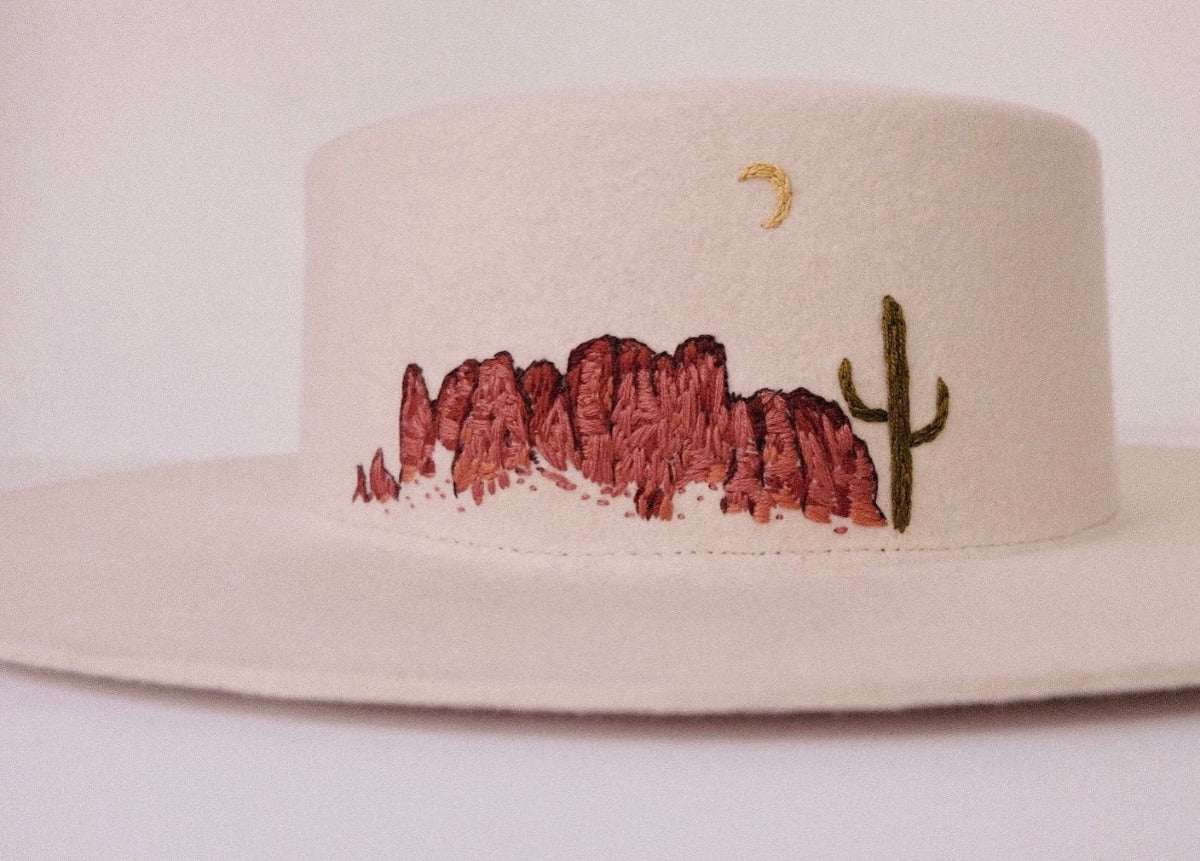 Each of the hats in the Landmark Series have been embroidered on the customer's hat of choice and with their input on colors for the embroidery. Submit a commission request form to discuss yours!